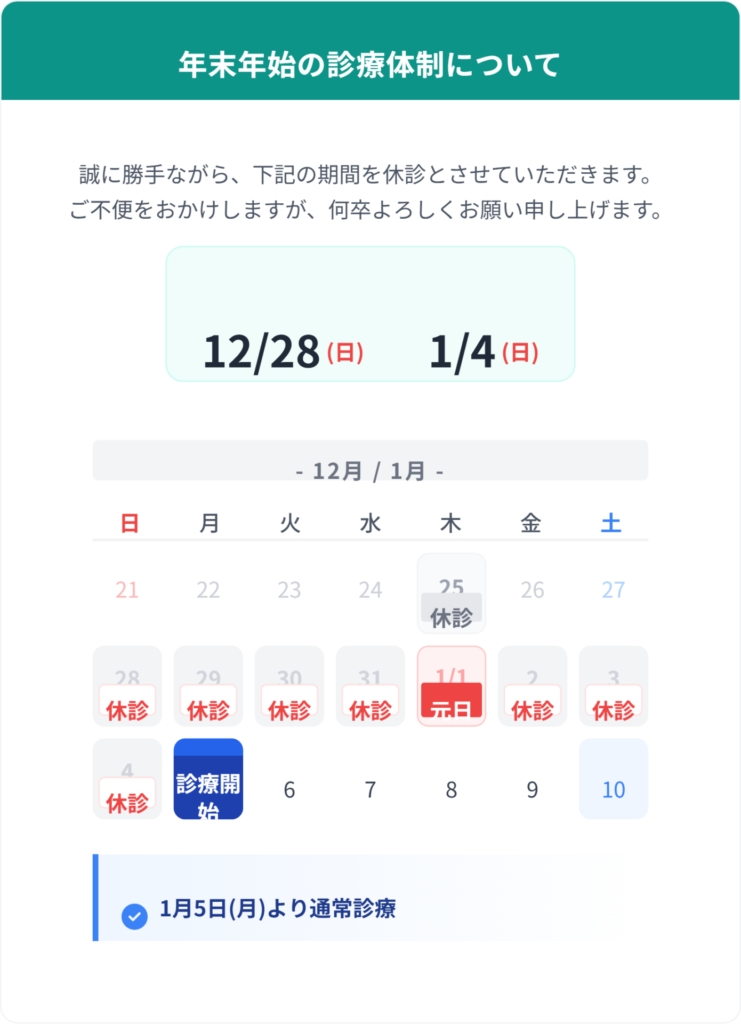 • オンライン資格確認を行う体制を整備しており、マイナンバーカードを用いた保険情報の確認が可能です。